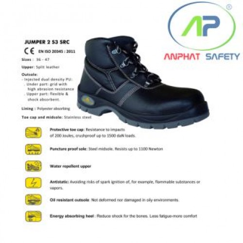 Chống đâm xuyên: Đế giày có lót thép chịu lực 1100 Newton.